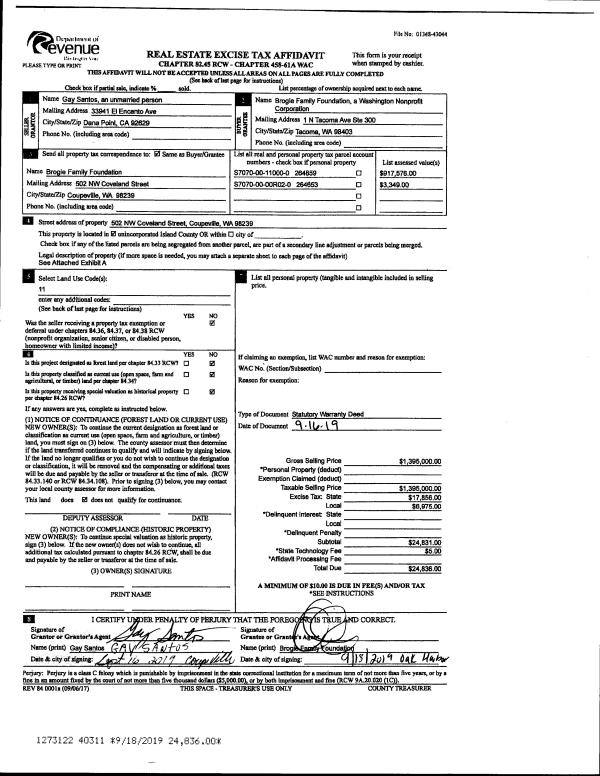 | 3 | 09/16/2019 | WD | Warranty Deed | SANTOS, GAY | BROGIE FAMILY FOUNDATION | | | $1,395,000.00 | 40311 | 4471598 |