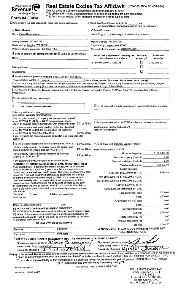 | Mailing Address: | 26 E DRY LAKE RD CAMANO ISLAND, WA 98282-7641 | % Ownership: | 100.0000000000% |