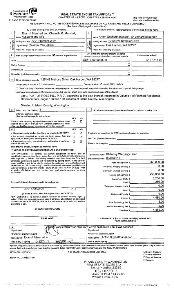 | Mailing Address: | 1311 ROSE LANE OAK HARBOR, WA 98277 | % Ownership: | 100.0000000000% |