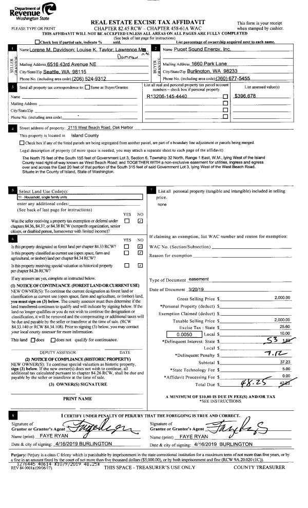 | 1 | 11/25/2019 | EZ | Easement | RYDER SR, JAMIE C | PUGET SOUND ENERGY | | | $1,500.00 | 41412 | 4477249 |
