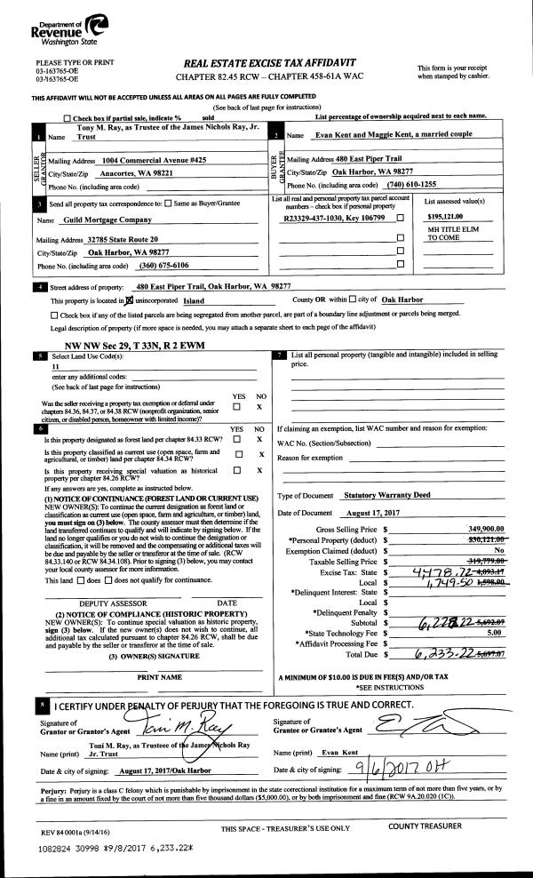 | 1 | 08/17/2017 | WD | Warranty Deed | RAY TRUSTEE, TONI M | KENT, EVAN | | | $349,900.00 | 30998 | 4429752 |