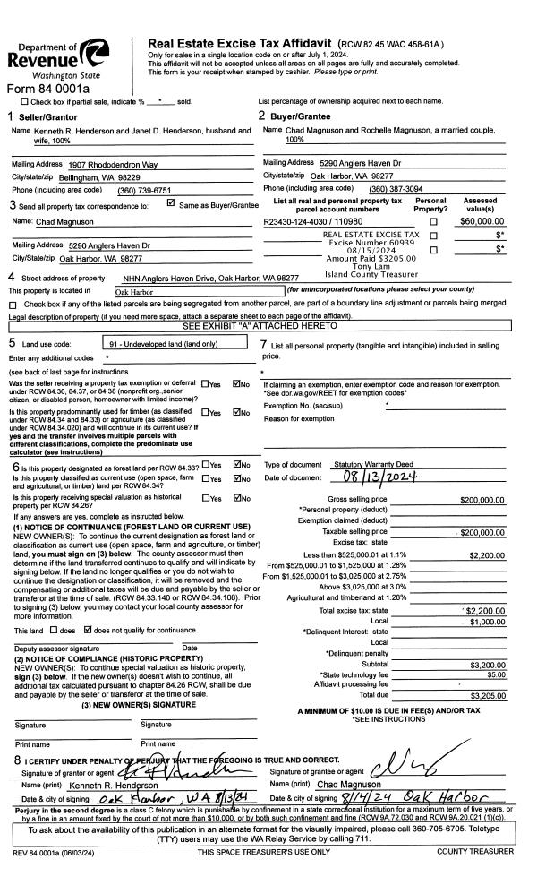 | Mailing Address: | ROCHELLE MAGNUSON 5290 HAVEN DR OAK HARBOR, WA 98277 | % Ownership: | 100.0000000000% |