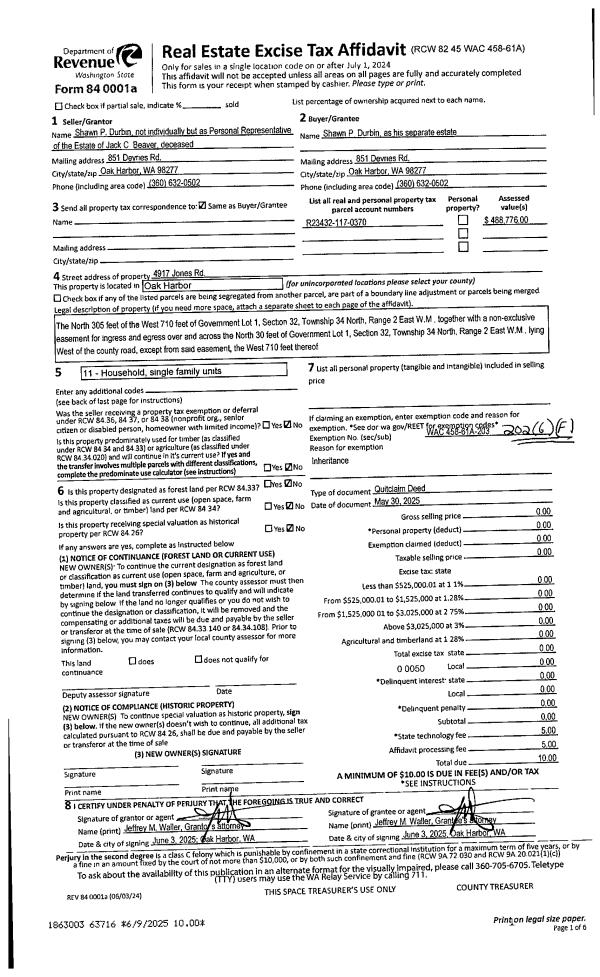 | 2 | 05/30/2025 | PRD | Personal Representatives Deed | BEAVER, JACK C | DURBIN, SHAWN P | | | $0.00 | 63626 | 4586440 |