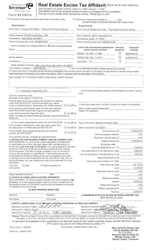 | 2 | 07/14/2021 | WD | Warranty Deed | CROUCH JTWROS, PAUL A | STOBART TTEE, JOHN B | | | $1,750,000.00 | 49148 | 4524364 |