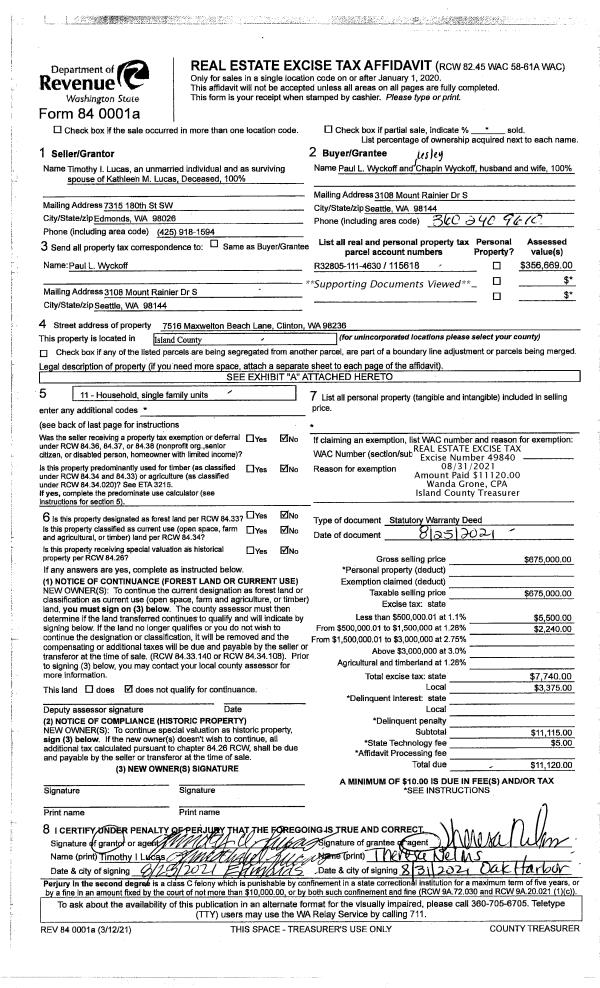 | 4 | 08/25/2021 | WD | Warranty Deed | LUCAS, TIMOTHY I | WYCKOFF, PAUL L | | | $675,000.00 | 49840 | 4528036 |