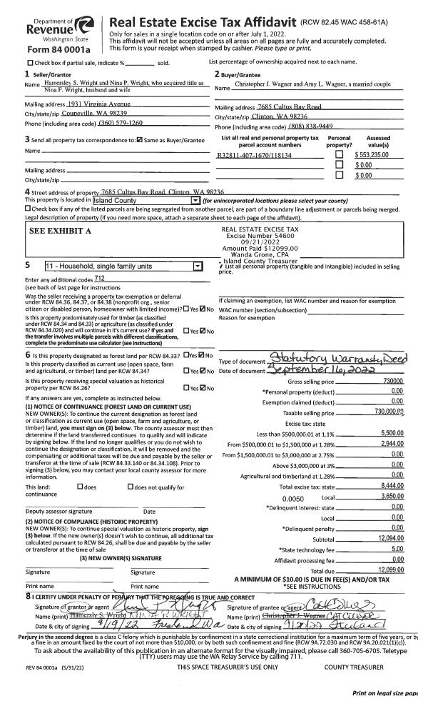 | 2 | 09/16/2022 | WD | Warranty Deed | WRIGHT, HAMERSLEY S | WAGNER, CHRISTOPHER J | | | $730,000.00 | 54600 | 4551467 |