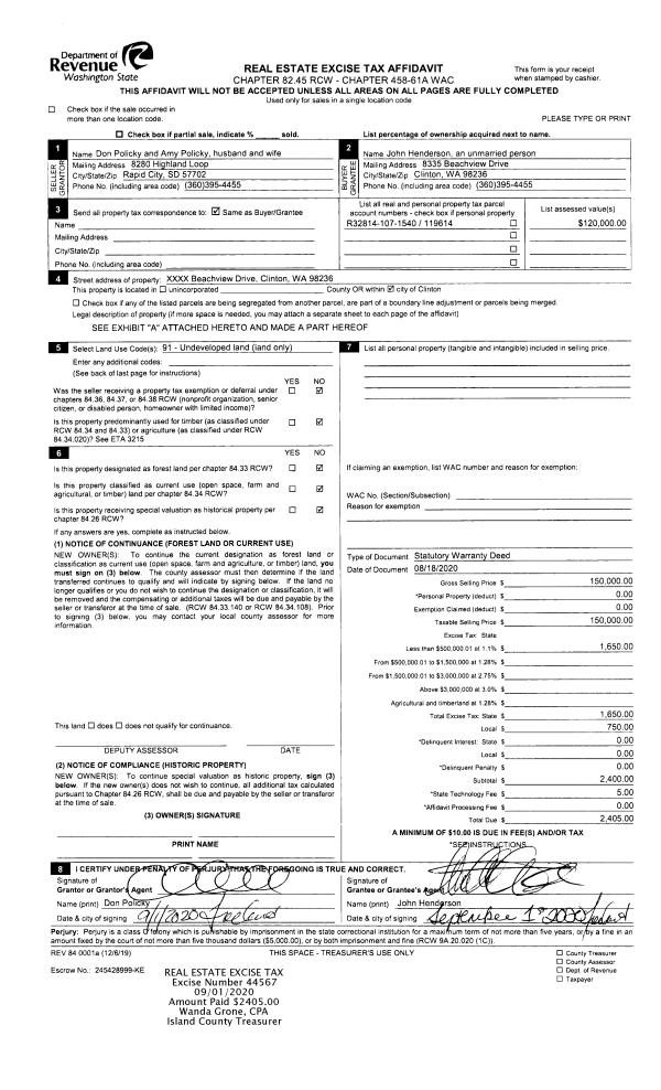 | 1 | 08/18/2020 | WD | Warranty Deed | POLICKY, DON | HENDERSON, JOHN | | | $150,000.00 | 44567 | 4495510 |