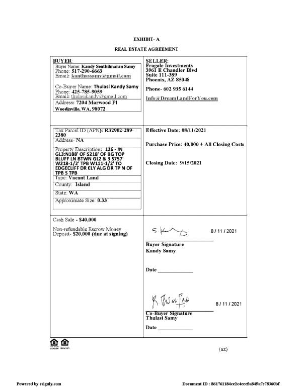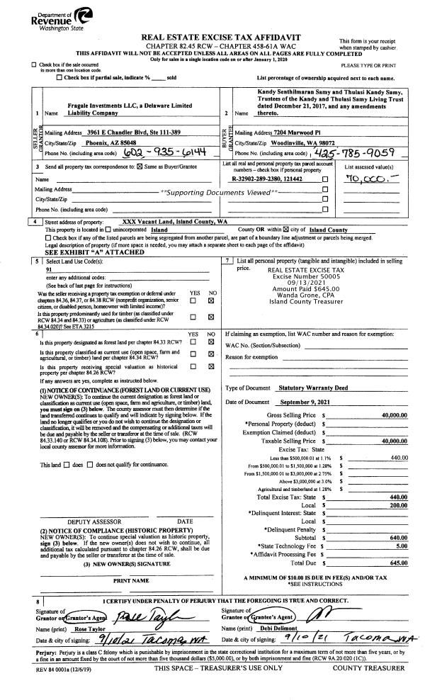 | 2 | 09/09/2021 | WD | Warranty Deed | FRAGALE INVESTMENTS, LLC | SAMY TTEE, KANDY SENTHILMARAN | | | $40,000.00 | 50005 | 4528965 |