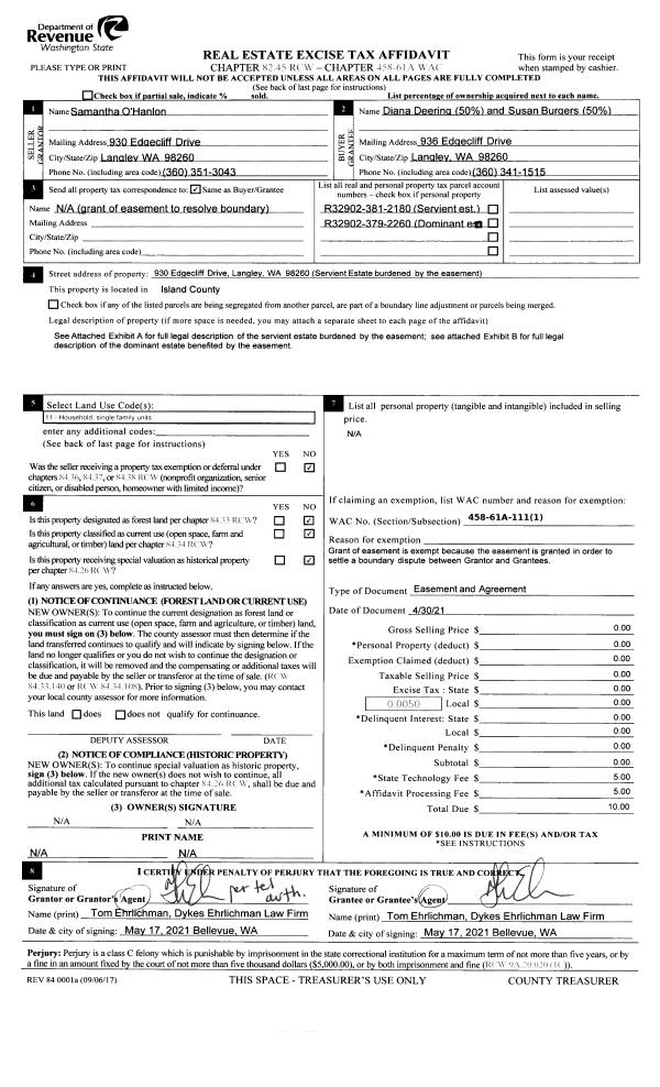 | 1 | 04/30/2021 | EZ | Easement | BURGERS JTWROS, SUSAN | BURGERS JTWROS, SUSAN | | | $0.00 | 48287 | 4519610 |
