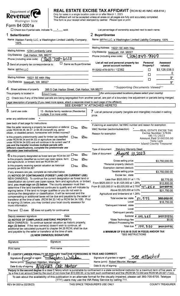 | 1 | 08/10/2023 | WD | Warranty Deed | WALDEN FAMILY LLC | MFF4 LLC | | | $3,750,000.00 | 57636 | 4563558 |