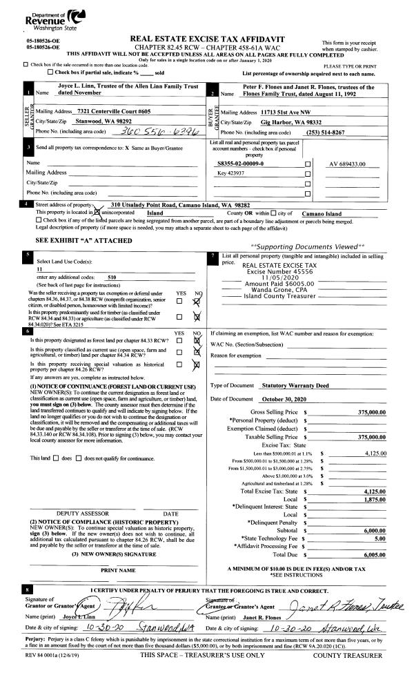 | Tax Area: | 719 - APPRAISER-S Whid Schl Dist, outside Langley, vacant & 50 acres or less | Land Use Code | 91 |