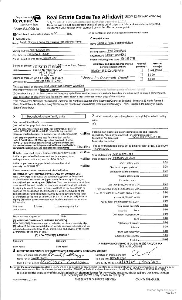 | 2 | 02/28/2025 | QCD | Quit Claim Deed | SKAGGS, RONALD | POPE, CARRIE M | | | $0.00 | 62952 | 4583789 |