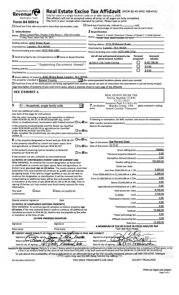 | 1 | 12/17/2021 | WD | Warranty Deed | PIKE TTEE, BRUCE LENARD | CORLETT TTEE, DANIEL J | | | $750,000.00 | 51442 | 4536481 |