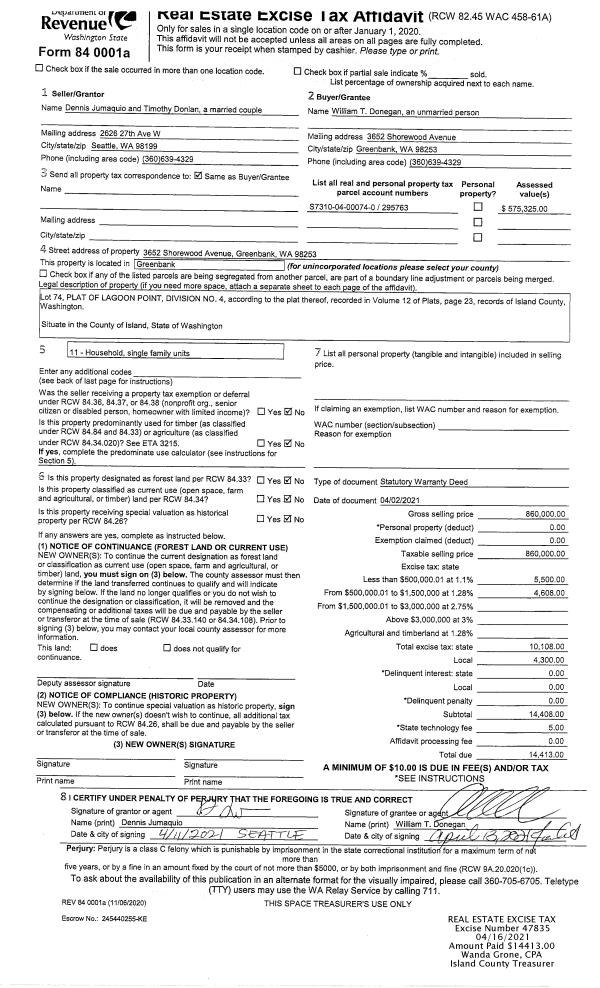 | Mailing Address: | 5114 BAYVIEW RD LANGLEY, WA 98260 | % Ownership: | 100.0000000000% |