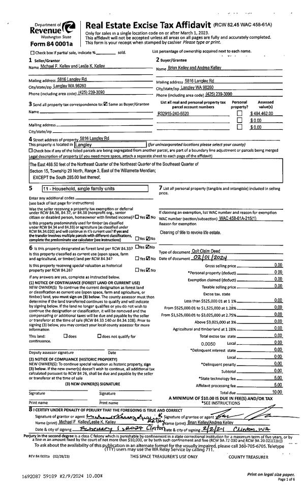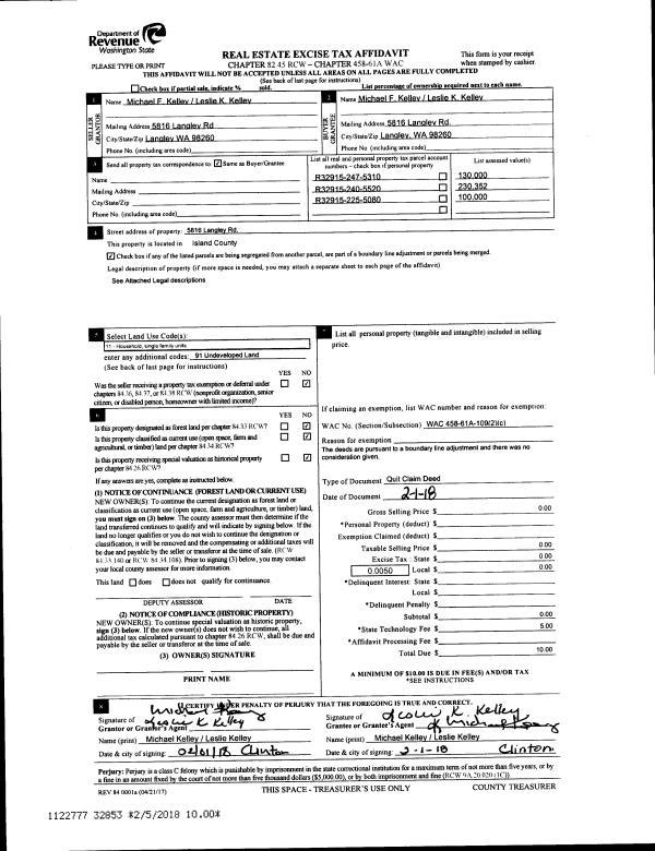 | Mailing Address: | ANDREA KELLY 5816 LANGLEY RD LANGLEY, WA 98260 | % Ownership: | 100.0000000000% |