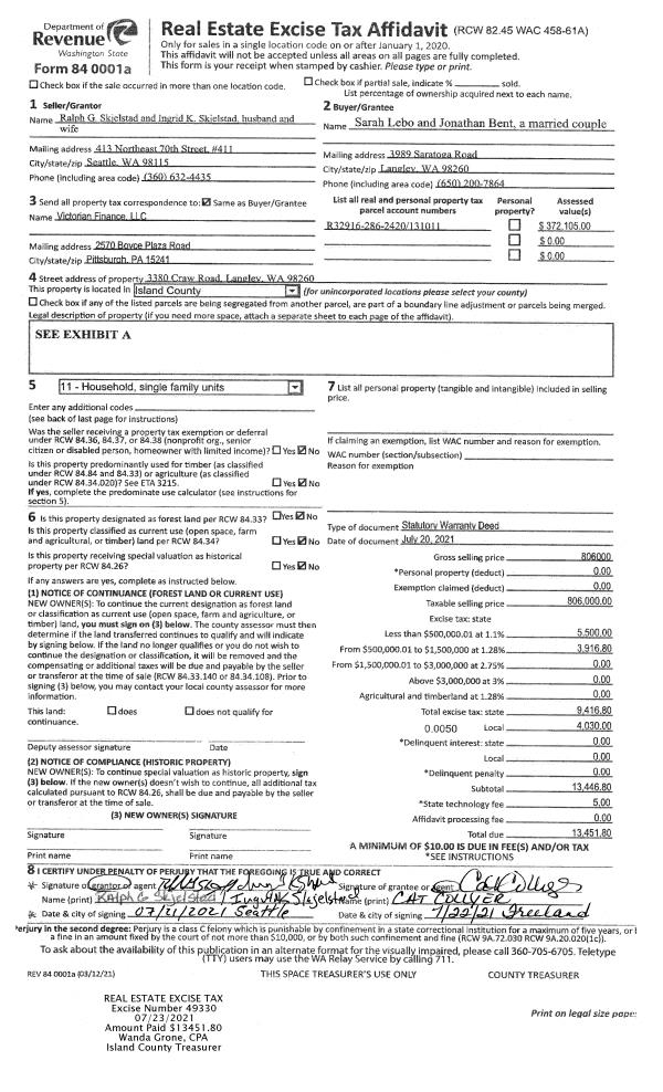 | 1 | 07/20/2021 | WD | Warranty Deed | SKJELSTAD, RALPH G | LEBO, SARAH | | | $806,000.00 | 49330 | 4525298 |