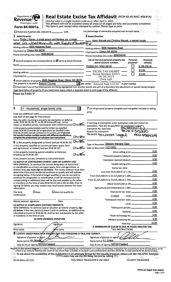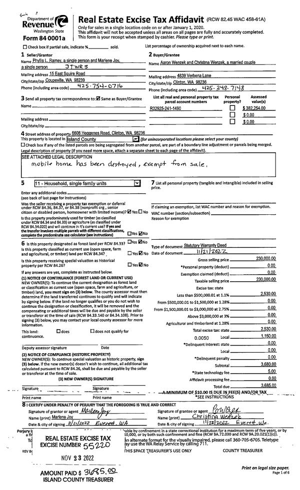 | 2 | 11/21/2022 | WD | Warranty Deed | RAINEY, PHYLLIS L | WENZEK, AARON | | | $0.00 | 63975 | 4587556 |