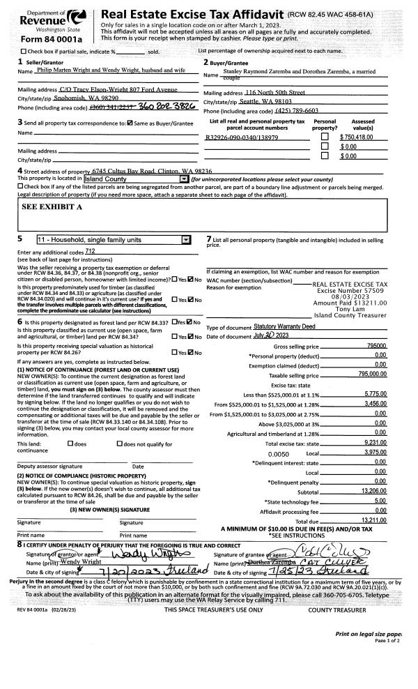 | 1 | 07/20/2023 | WD | Warranty Deed | WRIGHT, PHILIP M | ZAREMBA, STANLEY RAYMOND | | | $795,000.00 | 57509 | 4563039 |