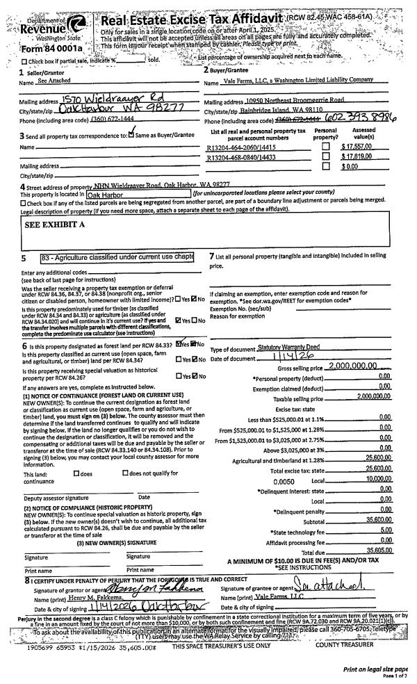 | 1 | 01/14/2026 | WD | Warranty Deed | FAKKEMA I, LLC | VALE FARMS, LLC | | | $2,000,000.00 | 65953 | 4595729 |