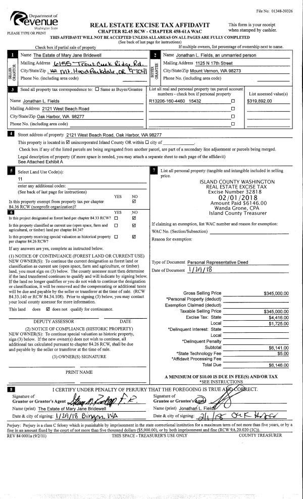 | 2 | 01/19/2018 | WD | Warranty Deed | PORT ANGELES HARDWOOD, LLC | OVERMAN, ROGER DEAN | | | $75,000.00 | 32740 | 4438127 |