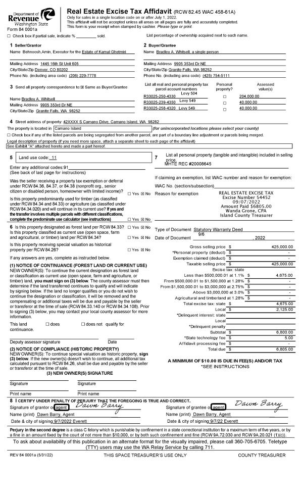 | 1 | 09/06/2022 | WD | Warranty Deed | GHETMIRI, KAMAL | WHITSELL, BRADLEY A. | | | $425,000.00 | 54452 | 4550836 |