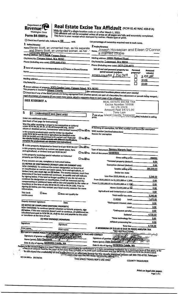 | 1 | 02/28/2024 | WD | Warranty Deed | SCOTT JTWROS, STEVE | HOVSEPIAN, JOSEPH | | | $295,000.00 | 59308 | 4569835 |