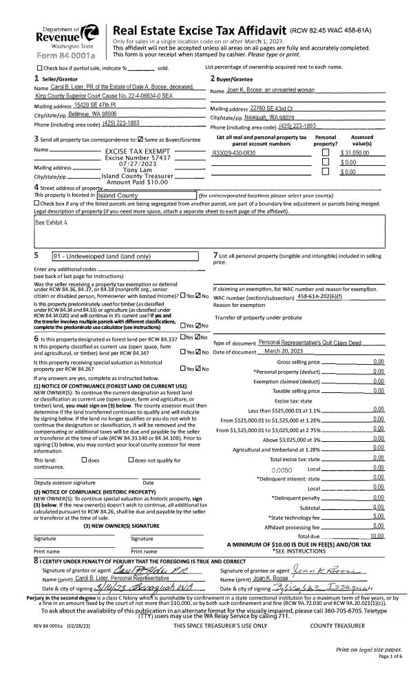 | 1 | 03/20/2022 | QCD | Quit Claim Deed | BOOSE, DALE A | BOOSE, JOAN K | | | $0.00 | 57437 | 4562760 |