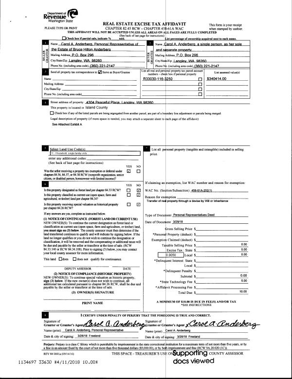 | 2 | 03/29/2018 | PRD | Personal Representatives Deed | ANDERBERG, BRUCE | ANDERBERG, CAROL A | | | $0.00 | 33630 | 4442397 |