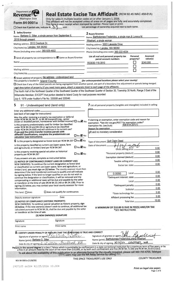 | Mailing Address: | BARBARA G SITTER LORENA M WISHART 5003 LAKESIDE DR LANGLEY, WA 98260 | % Ownership: | 100.0000000000% |