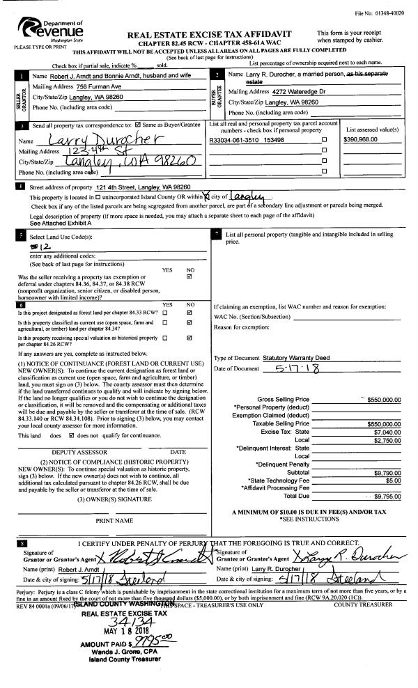| 2 | 05/17/2018 | WD | Warranty Deed | ARNDT, ROBERT J | DUROCHER, LARRY R | | | $550,000.00 | 34134 | 4444585 |
