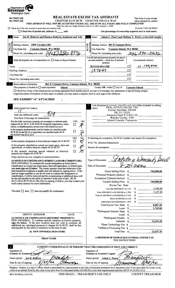 | 1 | 08/27/2020 | WD | Warranty Deed | ROBERTS, JOE R | POORT, ADAM L | | | $749,000.00 | 44544 | 4495396 |