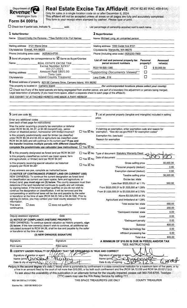 | 1 | 03/25/2025 | WD | Warranty Deed | VINCENT HOIBY, PR | LONG, MICHAEL L | | | $50,000.00 | 62937 | 4583710 |