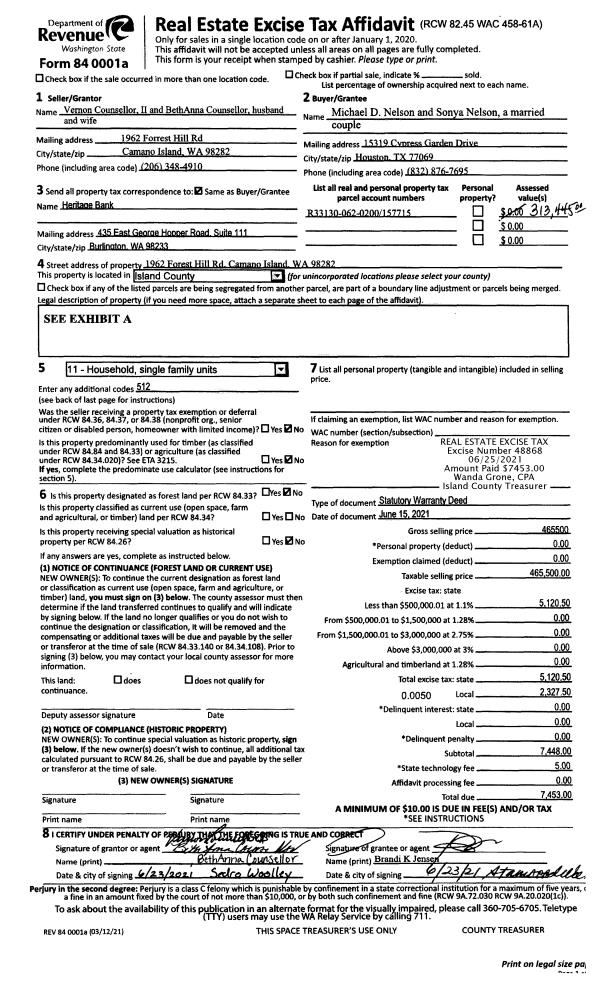 | 1 | 06/15/2021 | WD | Warranty Deed | COUNSELLOR II, VERNON | NELSON, MICHAEL D | | | $465,500.00 | 48868 | 4522792 |