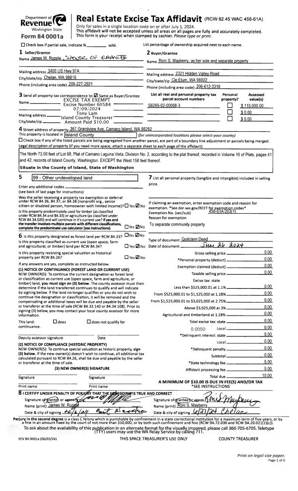 | Mailing Address: | 1783 WEST BEACH RD OAK HARBOR, WA 98277 | % Ownership: | 100.0000000000% |