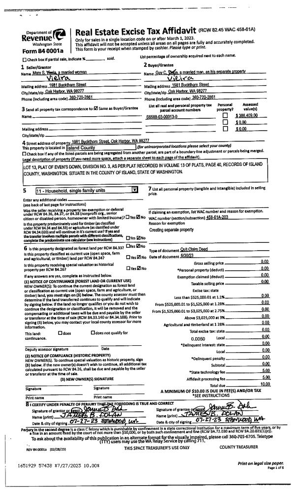 | Mailing Address: | 606 SMITH RD CAMANO ISLAND, WA 98282 | % Ownership: | 100.0000000000% |