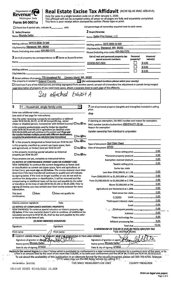 | 2 | 02/07/2022 | QCD | Quit Claim Deed | GETTER, RHONDA S | GETTER FINE HOMES LLC | | | $0.00 | 52253 | 4541283 |