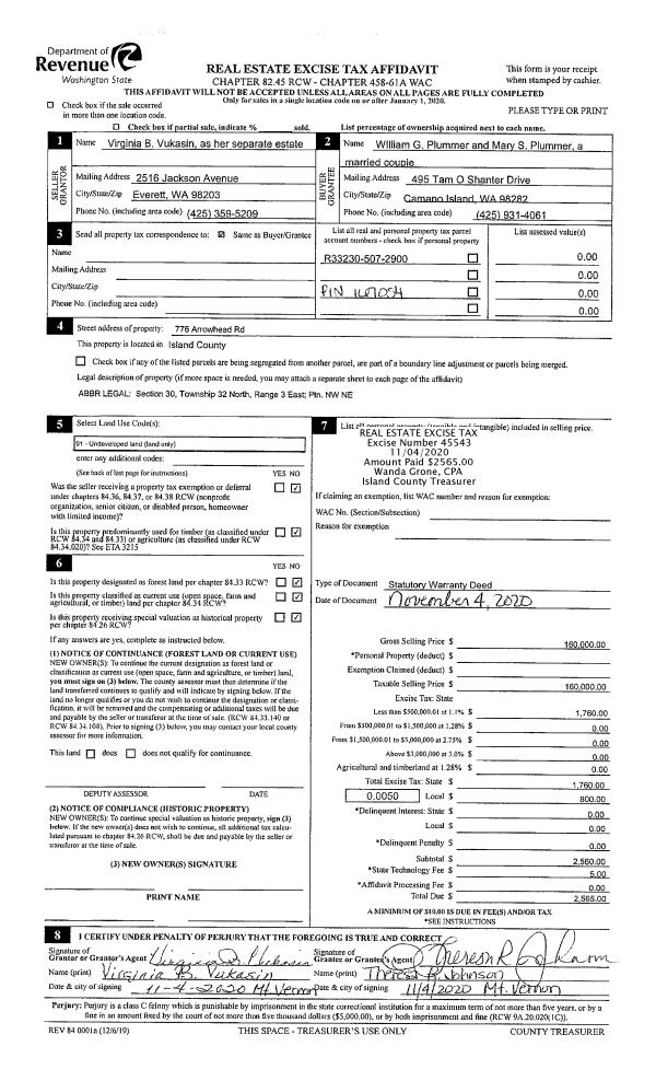 | 4 | 11/04/2020 | WD | Warranty Deed | VUKASIN, VIRGINIA B | PLUMMER, WILLIAM G | | | $160,000.00 | 45543 | 4501389 |