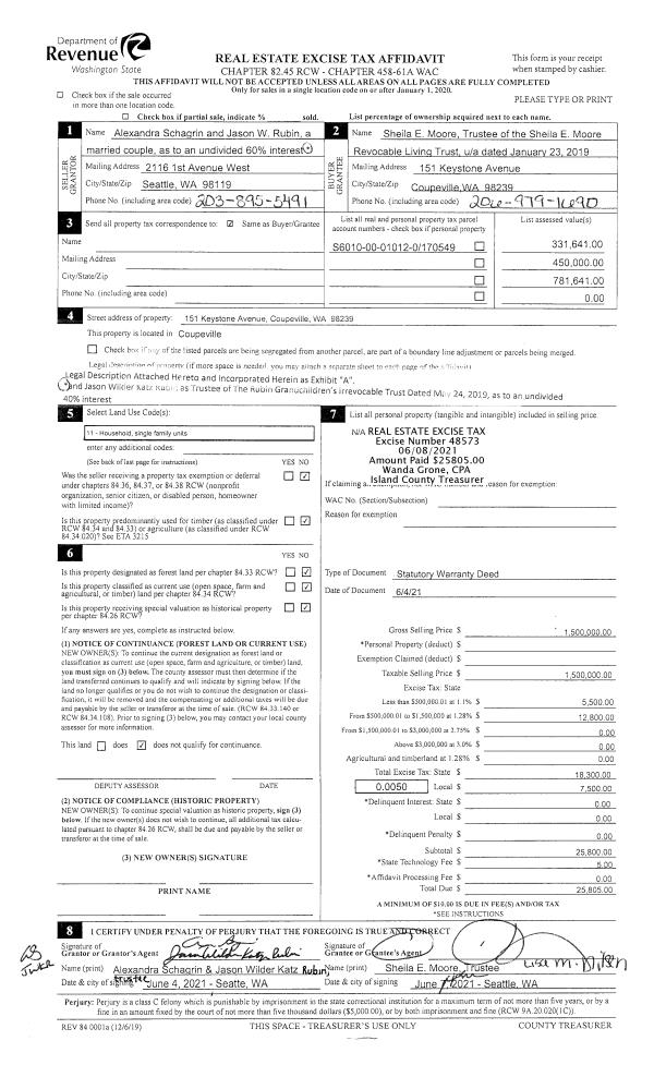 | 1 | 06/04/2021 | WD | Warranty Deed | SCHAGRIN, ALEXANDER | MOORE TTEE, SHEILA E | | | $1,500,000.00 | 48573 | 4521171 |