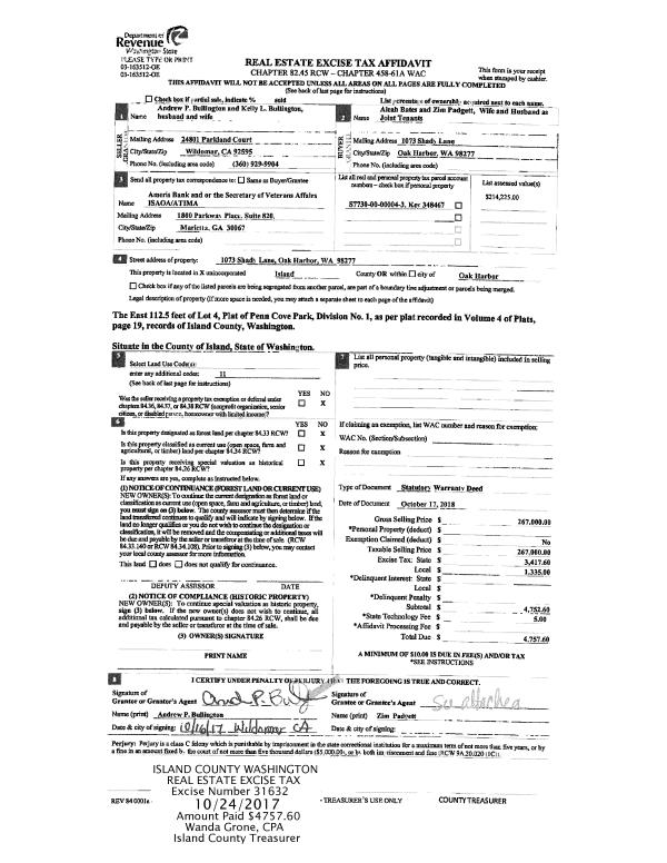 | Mailing Address: | HEATHER A TENORE 76 KEYSTONE AVE COUPEVILLE, WA 98239-9715 | % Ownership: | 100.0000000000% |