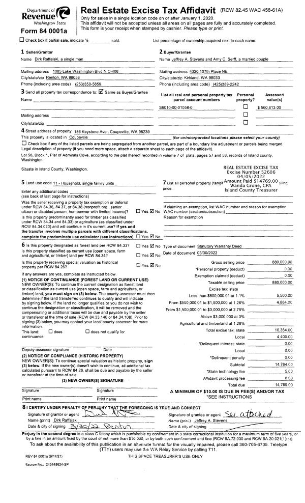 | 1 | 03/30/2022 | WD | Warranty Deed | RAFFALSKI, DIRK | STEVENS, JEFFREY A | | | $880,000.00 | 52606 | 4542834 |