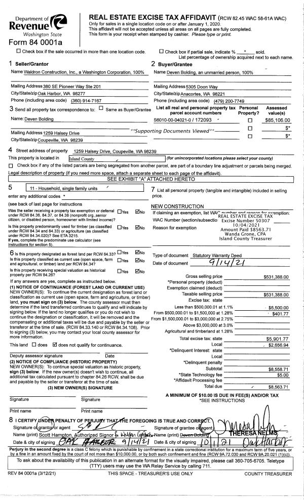 | 1 | 09/14/2021 | WD | Warranty Deed | WALDRON CONSTRUCTION, INC. | BOLDING, DEVEN | | | $531,388.00 | 50307 | 4530558 |