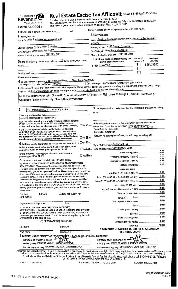| Mailing Address: | 6104 S MAXWELTON RD CLINTON, WA 98236 | % Ownership: | 100.0000000000% |