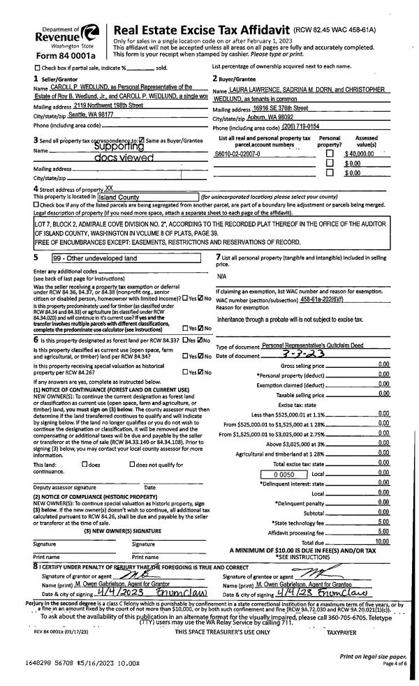 | 2 | 03/03/2023 | PRD | Personal Representatives Deed | WEDLUND, ROY B | LAWRENCE, LAURA | | | $0.00 | 56708 | 4559968 |