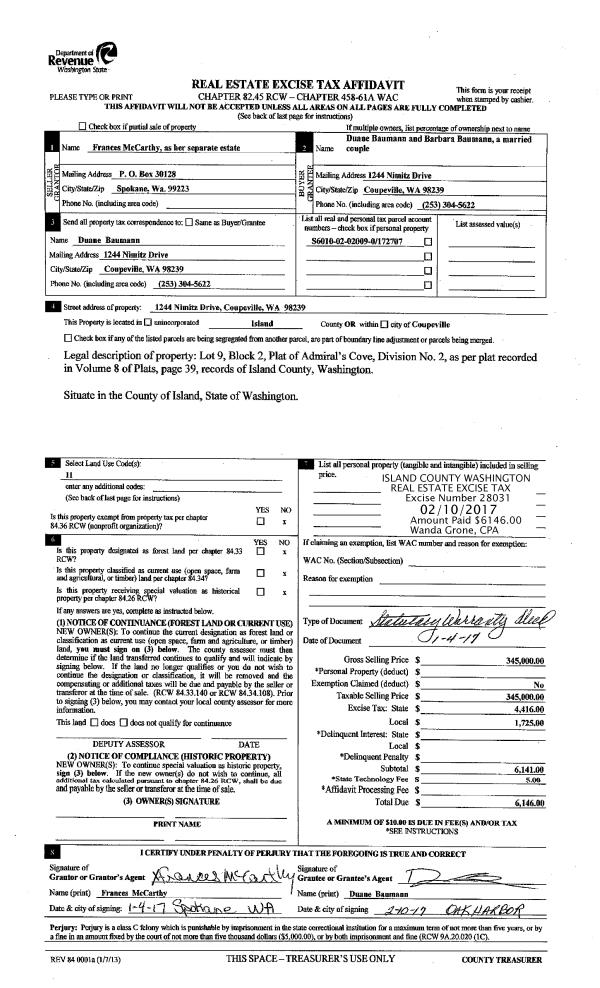 | 2 | 01/04/2017 | WD | Warranty Deed | MCCARTHY, FRANCES | BAUMANN, DUANE | | | $345,000.00 | 28031 | 4416816 |