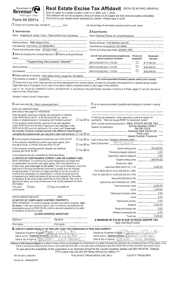 | 1 | 08/05/2024 | WD | Warranty Deed | SMITH TRUSTEE, SHIRLEY M | D'SYLVA, DESIREE | | | $200,000.00 | 60857 | 4575553 |