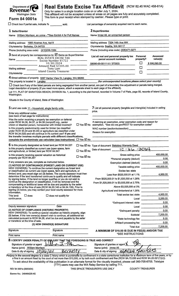 | Mailing Address: | 1107 HALSEY DR COUPEVILLE, WA 98239-9783 | % Ownership: | 100.0000000000% |