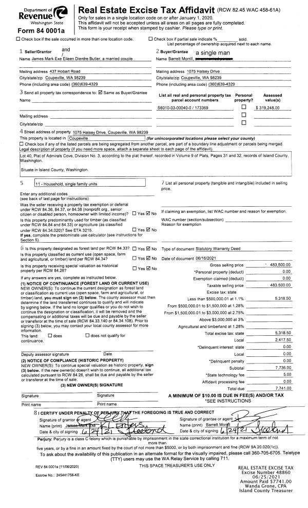 | 1 | 06/16/2021 | WD | Warranty Deed | EXE, JAMES M | MORRILL, BARRETT | | | $483,500.00 | 48860 | 4522728 |