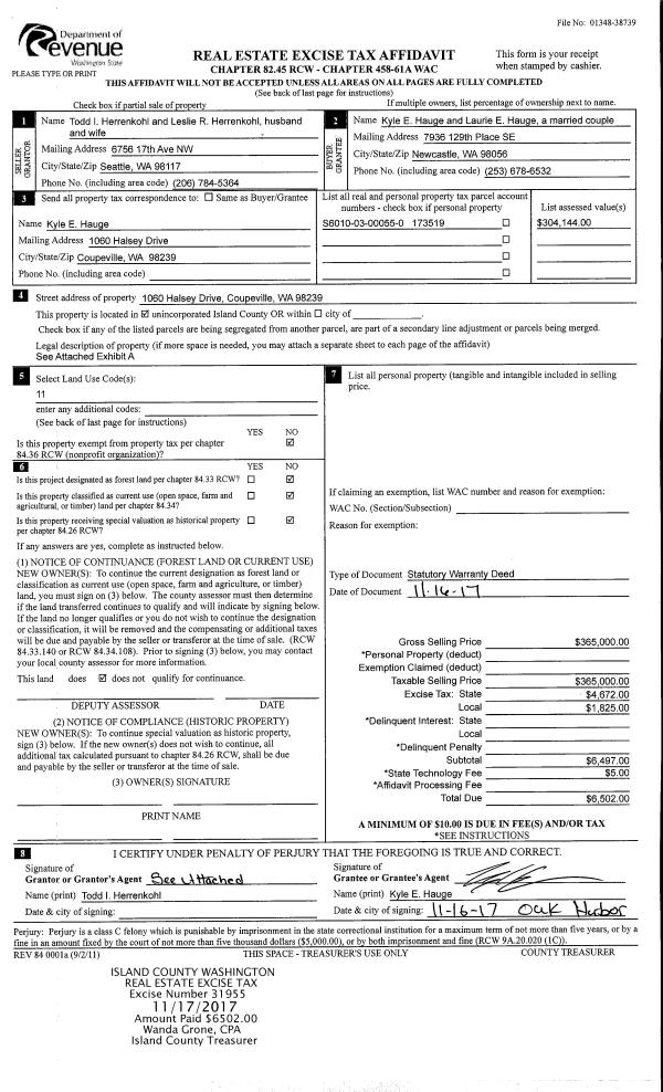 | 2 | 11/16/2017 | WD | Warranty Deed | HERRENKOHL, TODD I | HAUGE, KYLE E | | | $365,000.00 | 31955 | 4434340 |