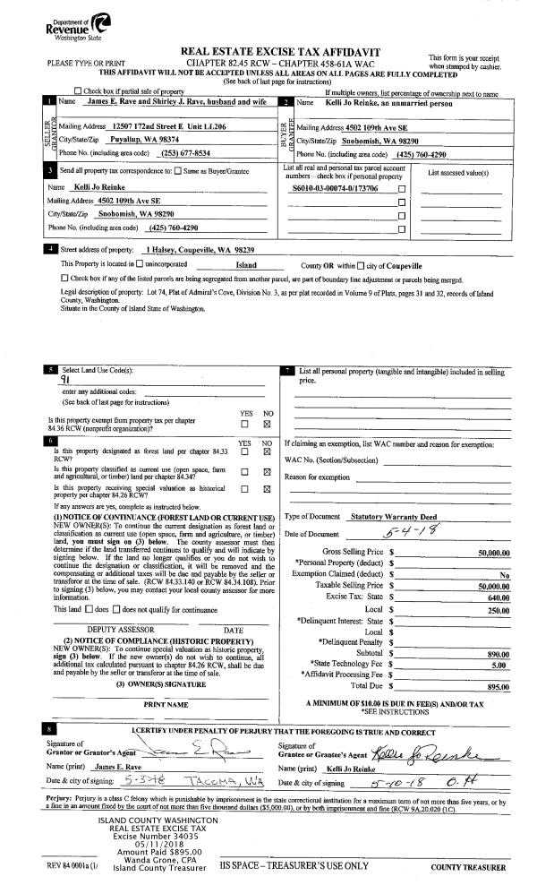 | 2 | 05/04/2018 | WD | Warranty Deed | RAVE, JAMES E | REINKE, KELLI JO | | | $50,000.00 | 34035 | 4444098 |