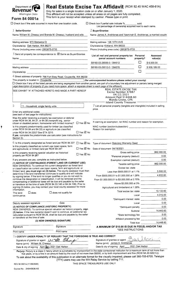 | Mailing Address: | 90 CHAMBERS COURT COUPEVILLE, WA 98239-4107 | % Ownership: | 100.0000000000% |